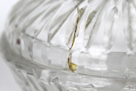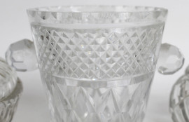 Lotto di tre oggetti in cristallo, con finiture in argento e metallo argentato, alt. max cm 13,5, (difetti)