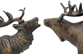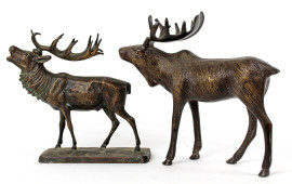 Lotto di un cervo e un alce in bronzo, misure max. cm 20x22x9,5, metà XX secolo.