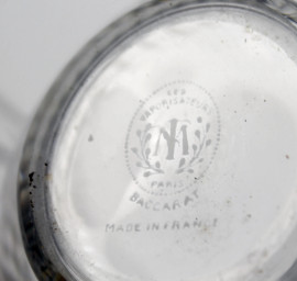 Lotto di un vaporizzatore in cristallo Baccarat ed una bottiglia da liquore in cristallo controtagliato, alt. max cm 25, (difetti e parti mancanti).