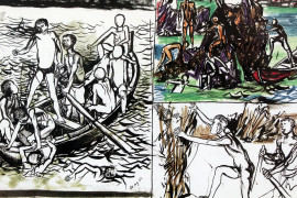 Lotto di una stampa ed una tecnica mista su carta, autori diversi, misure max cm 32x44, entro cornici