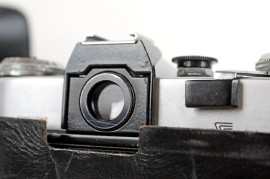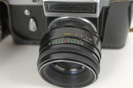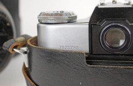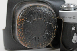 Macchina fotografica Zenit, numero 7570785, con custodia in pelle
