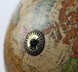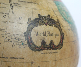Mappamondo in perspex su base in legno, cm h 43, XX secolo.