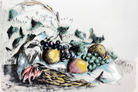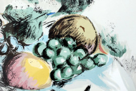 Natura morta, multiplo a colori su carta, es. 62/150, cm 48x65, entro cornice