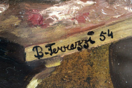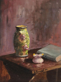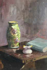 Natura morta, olio su cartone, cm 28x22, firmato, entro cornice