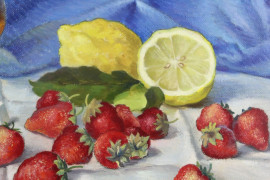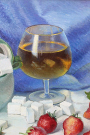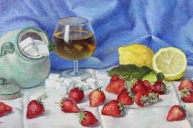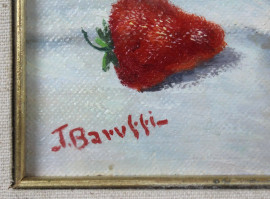 Natura morta, olio su tela applicata su cartone, cm h 24x41,5, firmato, entro cornice