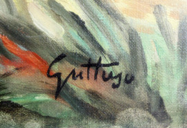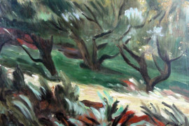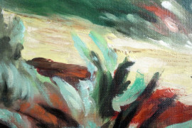 Omaggio a Guttuso, paesaggio, olio su tela, cm 31x44, entro cornice