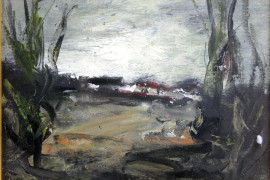 Paesaggio, olio su tela, cm 18,5x24, XX secolo, entro cornice