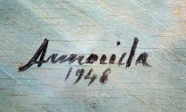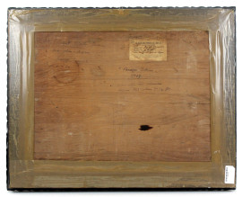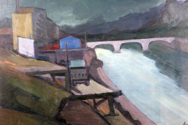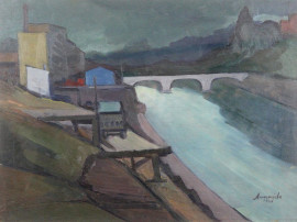Paesaggio tiberino,olio su tela, cm 46x60, bolli esposizione Biennale di Venezia 1948,entro cornice.