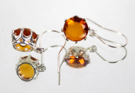 Paio di orecchini in argento ed ambra, lunghezza cm 3