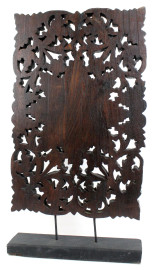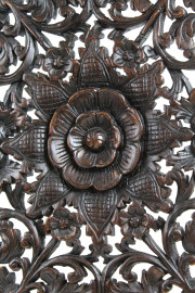 Pannello orientale in legno intagliato e traforato, XX secolo, cm 46,5x30