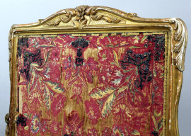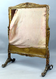Paracamino Napoleone III, in legno intagliato e dorato, pannello in stoffa ricamata e piedi desinenti a ricciolo, cm 109x74x37, (difetti)