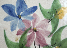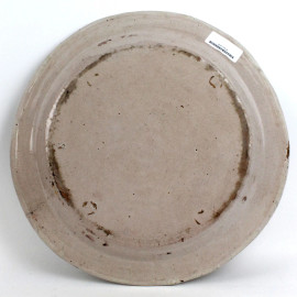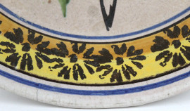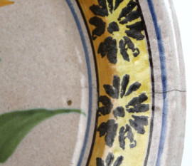 Piatto in ceramica policroma con decori raffiguranti fiori, diam. cm 42,5, XX secolo, (difetti)