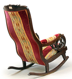 Poltrona a dondolo in noce, fine XIX-inizi XX secolo, cm h 112, (segni del tempo)