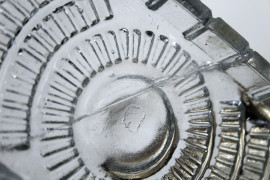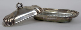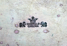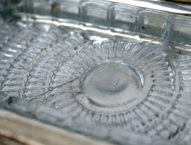 Portaburro Sheffield Chelsea con vaschetta interna in cristallo controtagliato, entro custodia originale in velluto blu, misure massime 10x24x16, (difetti)