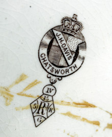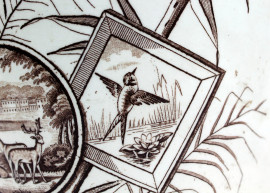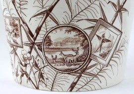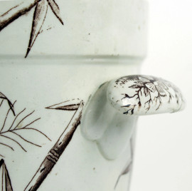 Portaghiaccio in ceramica bianca con decori in moncromia marrone, Inghilterra, J.H. Davis Chatsworth, 1883 circa, cm h 23,5, (difetti)