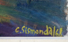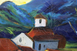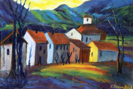 Quiete a Pagno,olio su tela, cm 68x59, datato 1968, entro cornice.