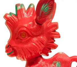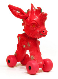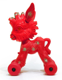Raro giocattolo vintage in plastica Moplen raffigurante cerbiatto su ruote, altezza cm 37