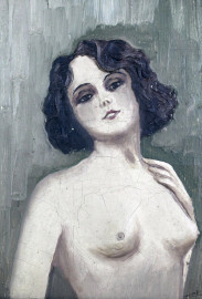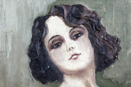 Ritratto di donna, dipinto polimaterico su cartoncino, cm 29x22, firmato, entro cornice