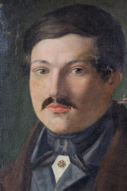 Ritratto di nobiluomo, olio su tela, cm 47x37, XIX secolo, (difetti alla tela)