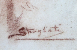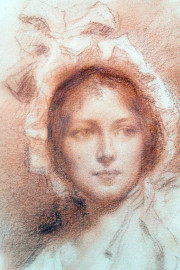 Ritratto di signorina, sanguigna su carta, cm 22x18,5, firmato Stragliati, entro cornice.
