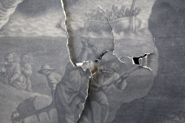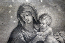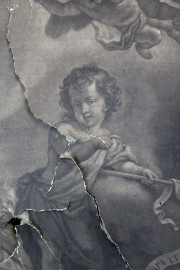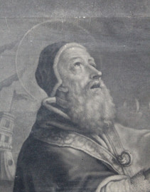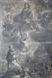 S.Clemente ha la visione della Vergine, stampa, cm 165x95, fine XVIII secolo, entro cornice, (difetti).