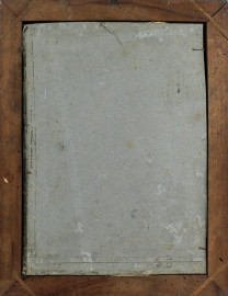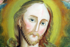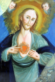 Sacro cuore di Gesù, dipinto sottovetro, cm 35,5x25,5, XX secolo, entro cornice (difetti)