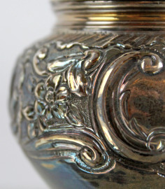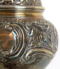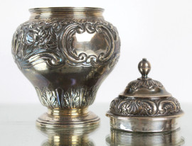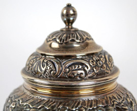 Scatola da thè in argento sbalzato e cesellato, cm h 13,5, Inghilterra, gr 180