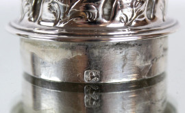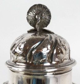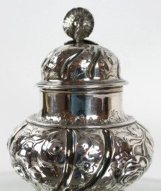 Scatola da thè in argento sbalzato e cesellato, cm h 15, Inghilterra, gr 258