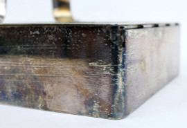 Scatola porta thè in legno e metallo argentato, cm 6x19,5x28,(difetti e mancanze).
