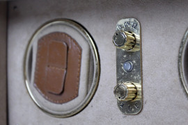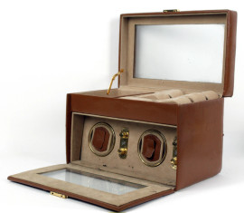 Scatola portaorologi in similpelle marrone, cm h 20,5x30x18,5, (difetti).