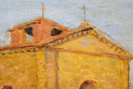Scorcio di Quintiliolo, olio su tavoletta, cm 31x50, firmato, entro cornice