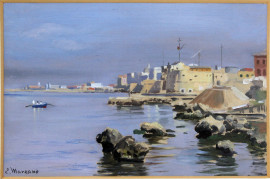 Scorcio di Taranto, olio su cartone, cm 18x27, entro cornice