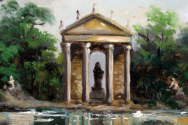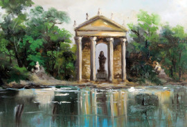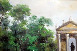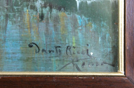 Scorcio di Villa Borghese, olio su masonite, cm 24x40, firmato Dante Ricci, entro cornice