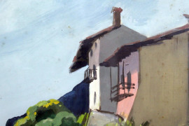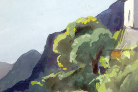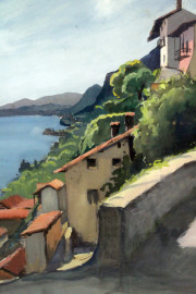 Scorcio sul Lago d'Iseo, olio su cartoncino, cm 87x66, datato 1941, entro cornice.