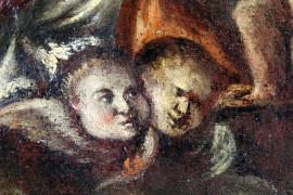 Scuola ferrarese, XVII secolo, Vescovo, olio su tela, cm 46,5x37,5.
