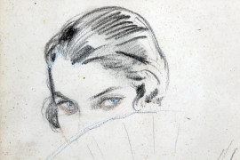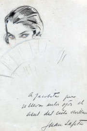 Sivigliana con ventaglio, matita su carta, cm 23,5x17, dedica e firma in basso a destra, XX secolo, entro cornice.