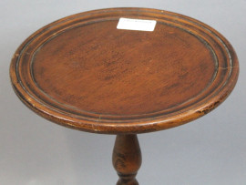 Tavolino di linea circolare in noce, prima metà XX secolo, gamba tornita poggiante su tre piedi sagomati, alt. cm 62,5, diam. cm 32,5,