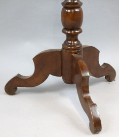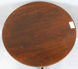 Tavolino di linea circolare in noce, prima metà XX secolo, gamba tornita poggiante su tre piedi sagomati, alt. cm 70, diam. cm 55, (segni di usura)