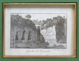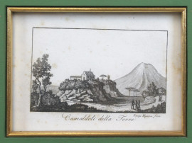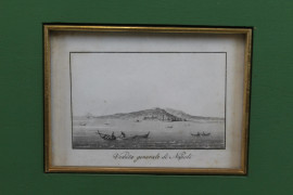 Tredici piccole stampe raffiguranti le principali vedute della provincia di Napoli e dintorni, entro un'unica cornice, cm 71x89, XX secolo