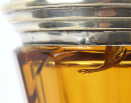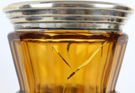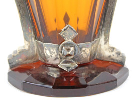 Vaso Art Déco in vetro fumè, con finiture in argento, cm h 27, (difetti)