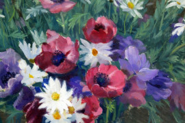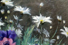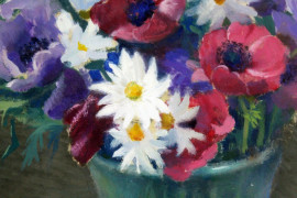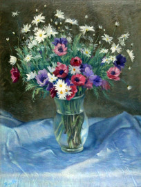 Vaso con fiori, olio su cartone, cm 66x49, firmato Baruffi, entro cornice