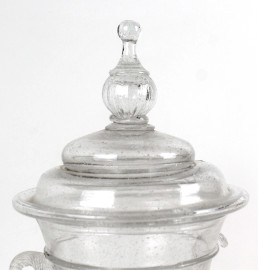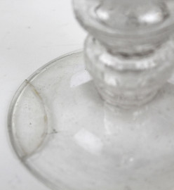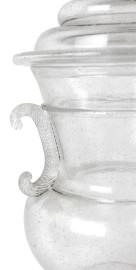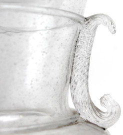 Vaso in vetro soffiato trasparente, lavorazione a bolle, cm h 39, (difetti)