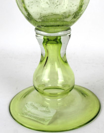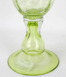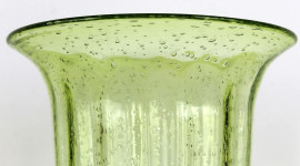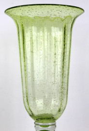 Vaso in vetro verde, lavorazione a bolle, cm h 42, metà XX secolo