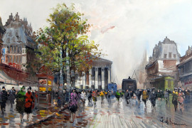 Veduta di Parigi, olio su tela, cm 50x70, firmato G. De Simone, entro cornice