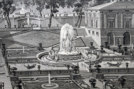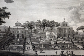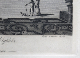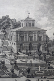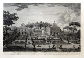 Veduta principale della Villa Lante in Bagnaia Architettura del celebre Giacomo Barozzi detto il Vignola, incisione, cm 64x90, inventore Francesco Panini (1745-1812), incisore Carlo Antonini (c.1750-1800), entro cornice