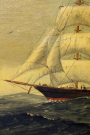 Veliero, olio su tela, cm 50x91, firmato in basso a destra, entro cornice, (difetti).