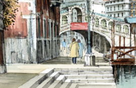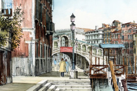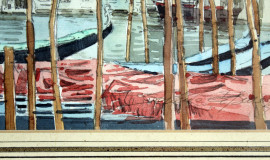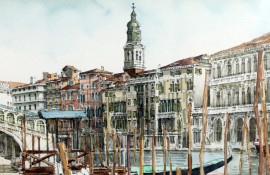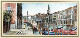 Venezia, acquarello su carta, cm 21x48, entro cornice.