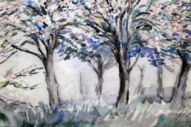 Alberi, acquarello su cartoncino, cm 24x32, firmato, entro cornice