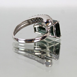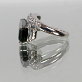 Anello contrarié con pavé di diamanti ct 0,70 e smeraldo di ct 11