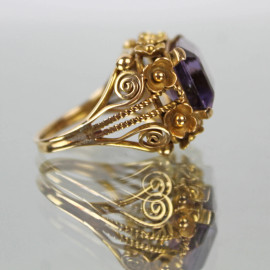 Anello in oro basso con ametista, Inghilterra, XIX secolo, gr.7
